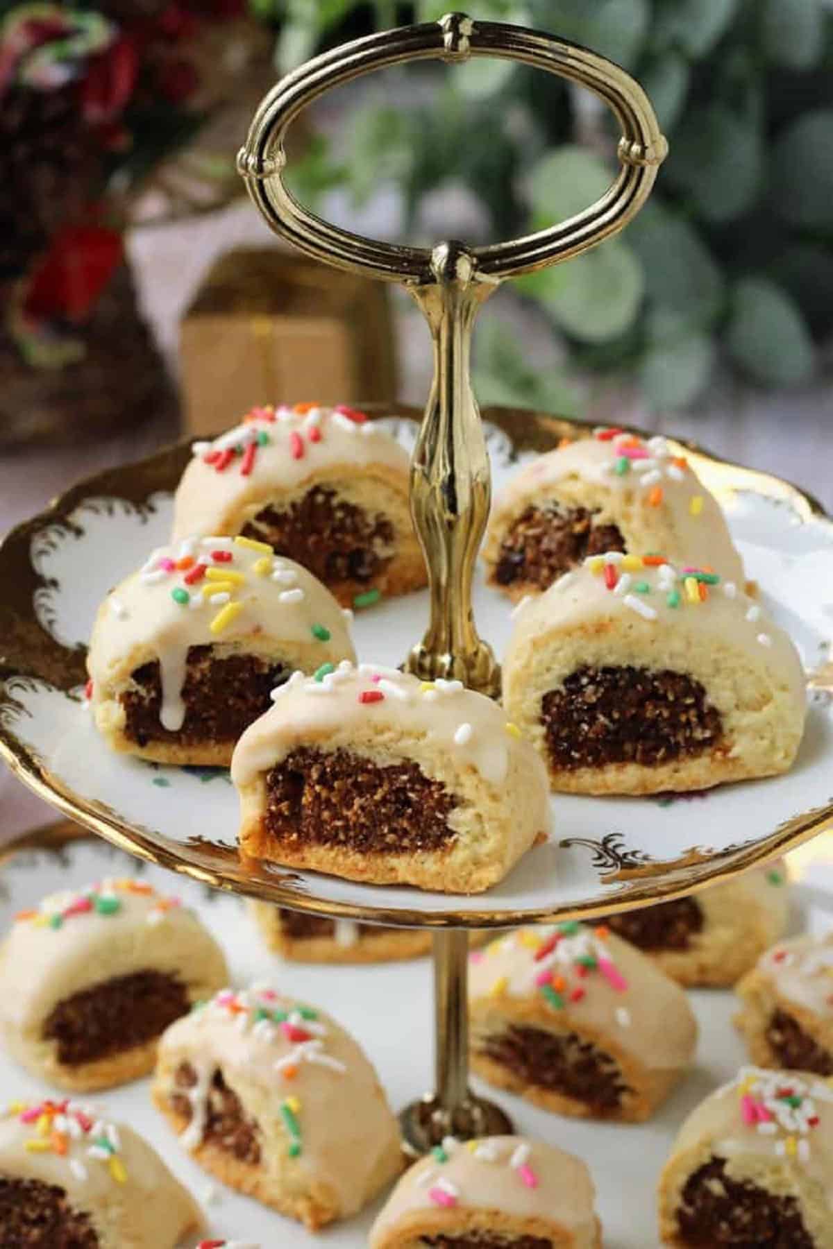 These Italian filled cookies are glazed with orange flavored icing and topped with nonpareils for a beautiful festive look. The ultimate Christmas cookie perfect for your dessert tray!